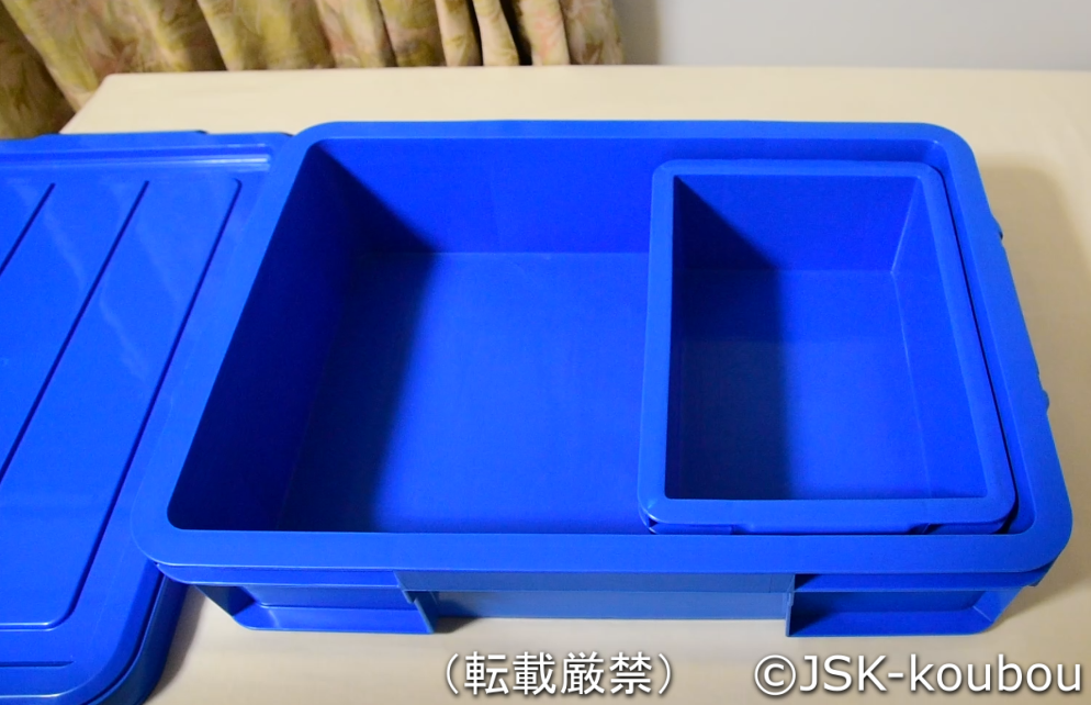 ホームセンターで手に入るプラボックスでは丁度良いサイズがありませんでしたが、丁度良いサイズのボックスがありました。
